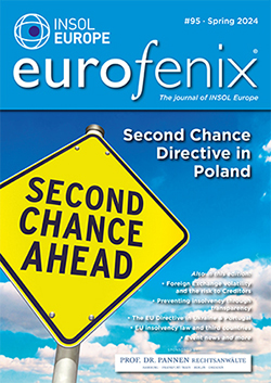 Second Chance for the Second Chance Directive in PolandForeign Exchange Volatility and the risk to CreditorsPreventing insolvency through transparency in PortugalTaking European insolvency law reform to the next level  The EU Directive in Ukraine & PortugalEU insolvency law and third countriesStatistics & Eurostat UpdateCountry reports, Book reviews and more! If you would like to contribute an article to a future edition or are interested in advertising opportunities, please contact publication manager Paul Newson. Eurofenix is kindly sponsored by Prof.Dr.Pannen